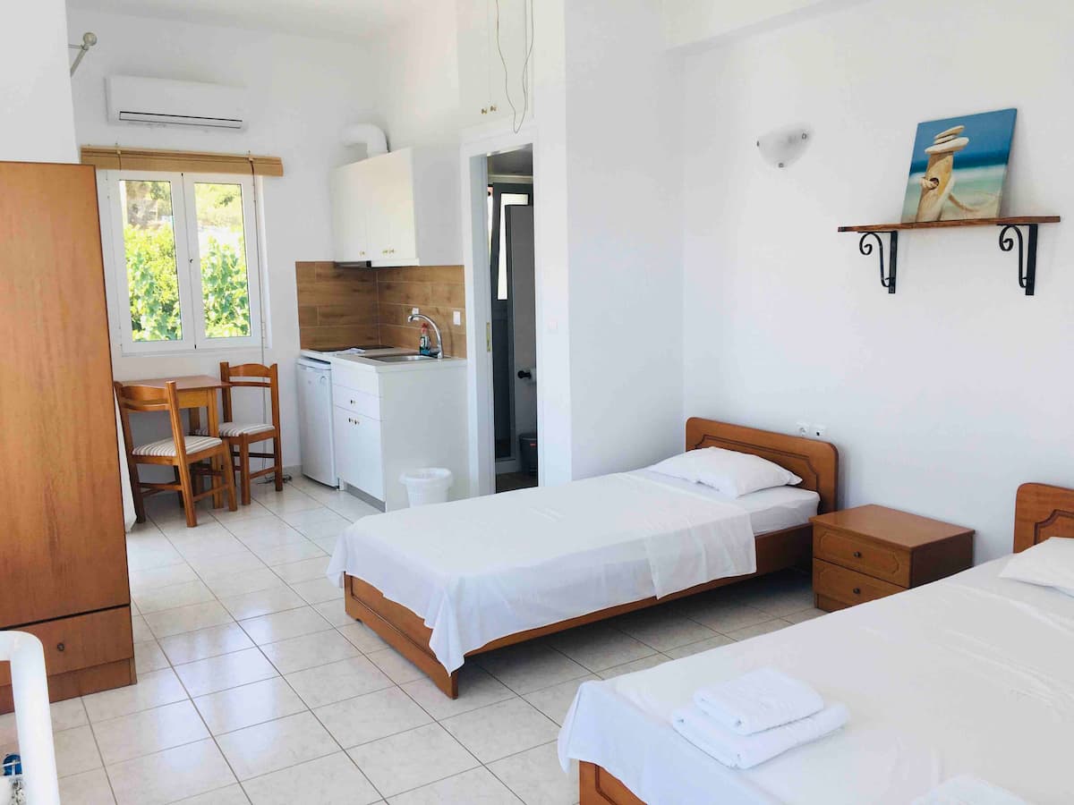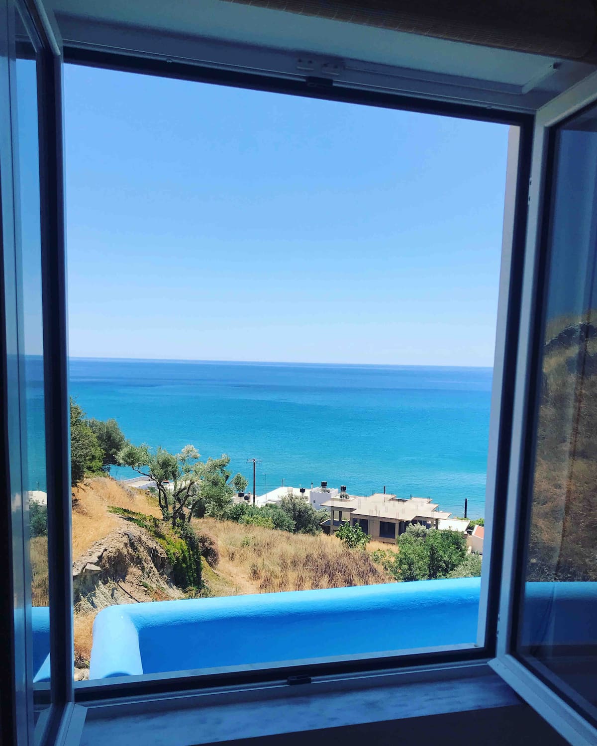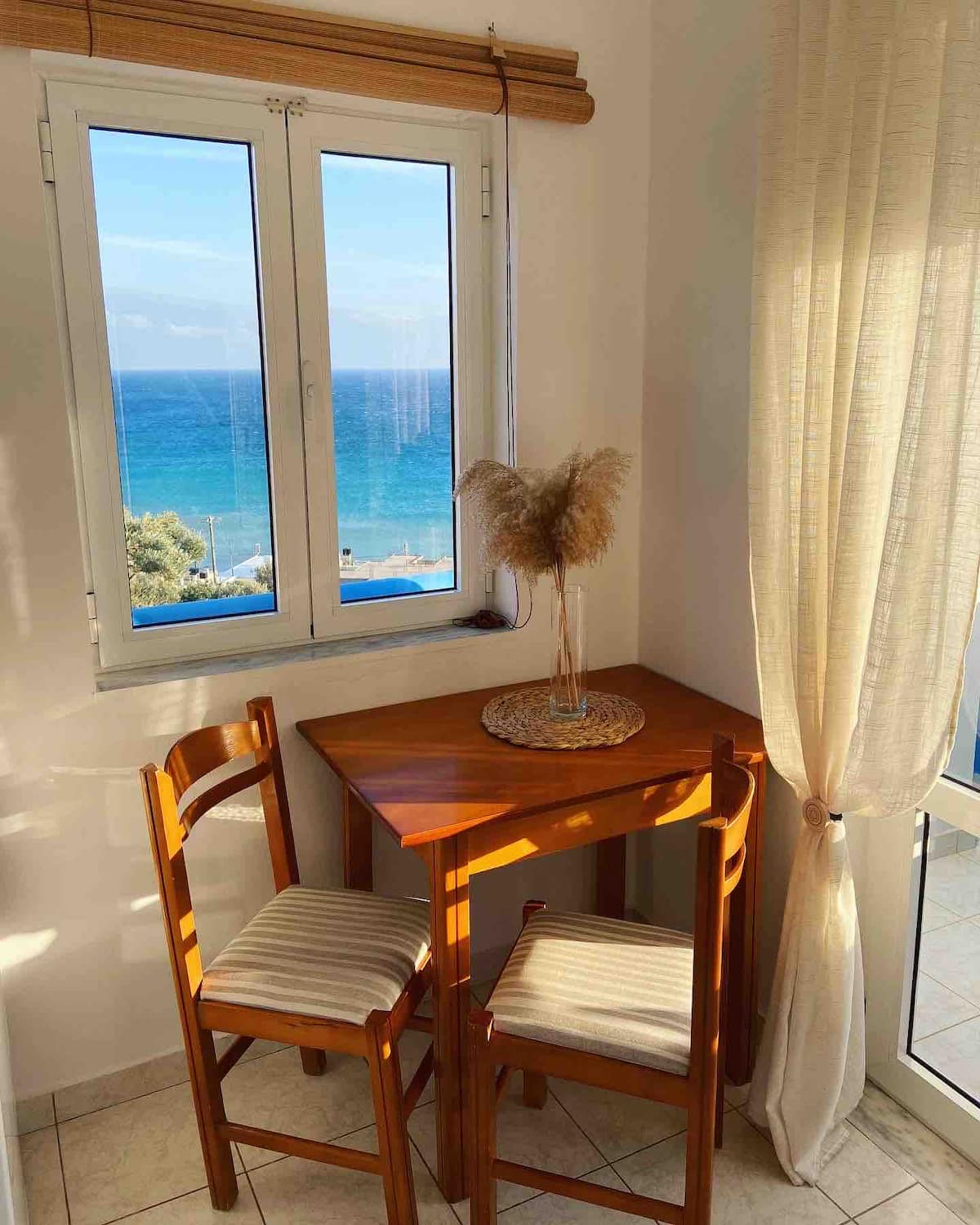 Our rooms are located in the center of the village of Kastri. From the balcony, you can enjoy a wonderful view of the southern Cretan Sea. The natural beaches, traditional Cretan tavernas, cafés, and mini markets are all within walking distance in just a few minutes.