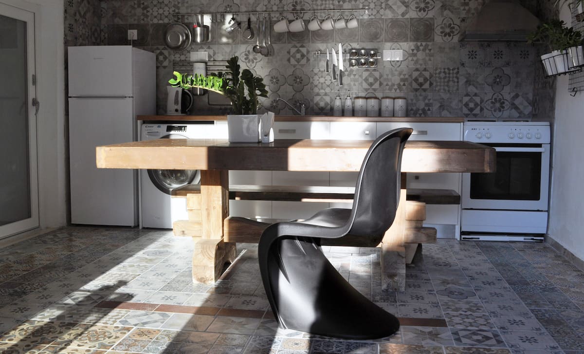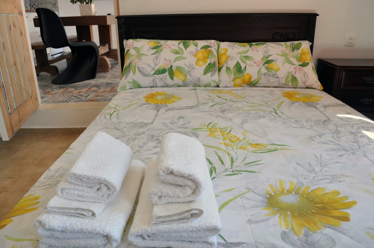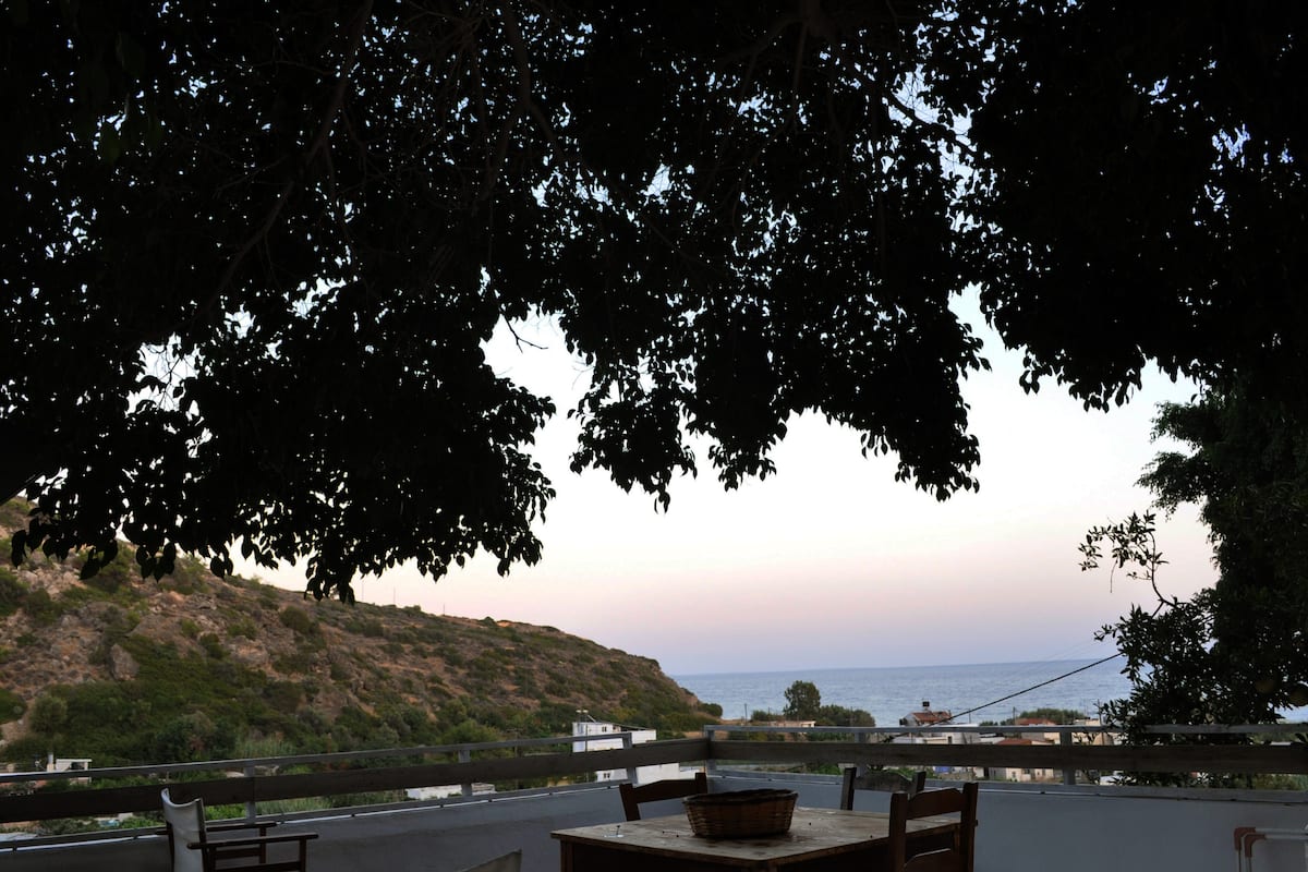 Apartment with unique character in Tertsa. Located on the side of an extraordinary valley 150 metres from the sea (2 minutes walk). Marvelous panoramic views of the scape include bananas, olive trees, tropical fruits, and the sea as a background. You will love the interior design, based on hostess’ handmade furniture & artwork!