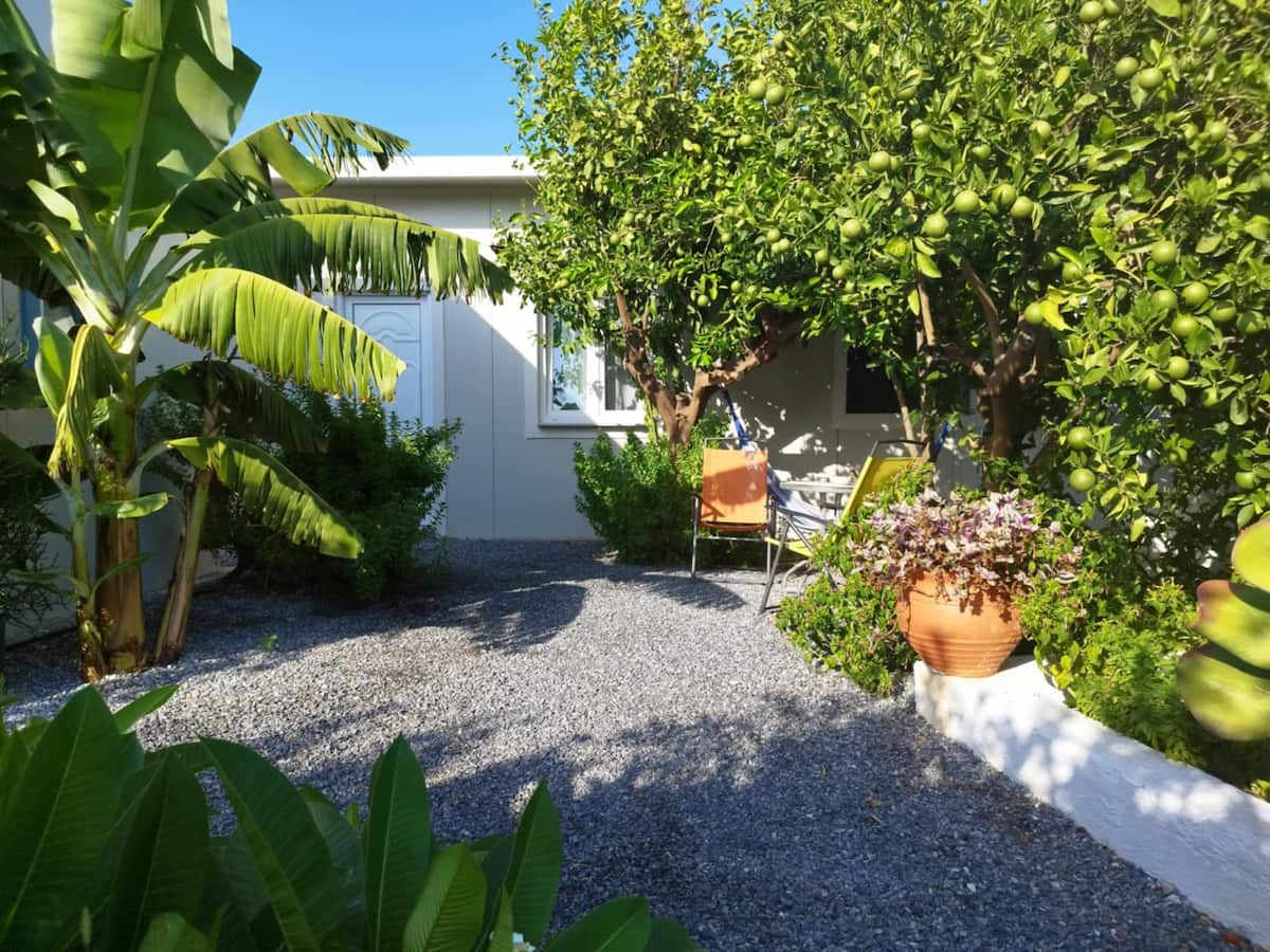 Μικρό σπίτι σε έναν όμορφο κήπο με δέντρα και λαχανικά σε ήσυχη γειτονιά του Κερατοκάμπου, μόλις 100 μέτρα από τη θάλασσα και την κοντινότερη παραλία!