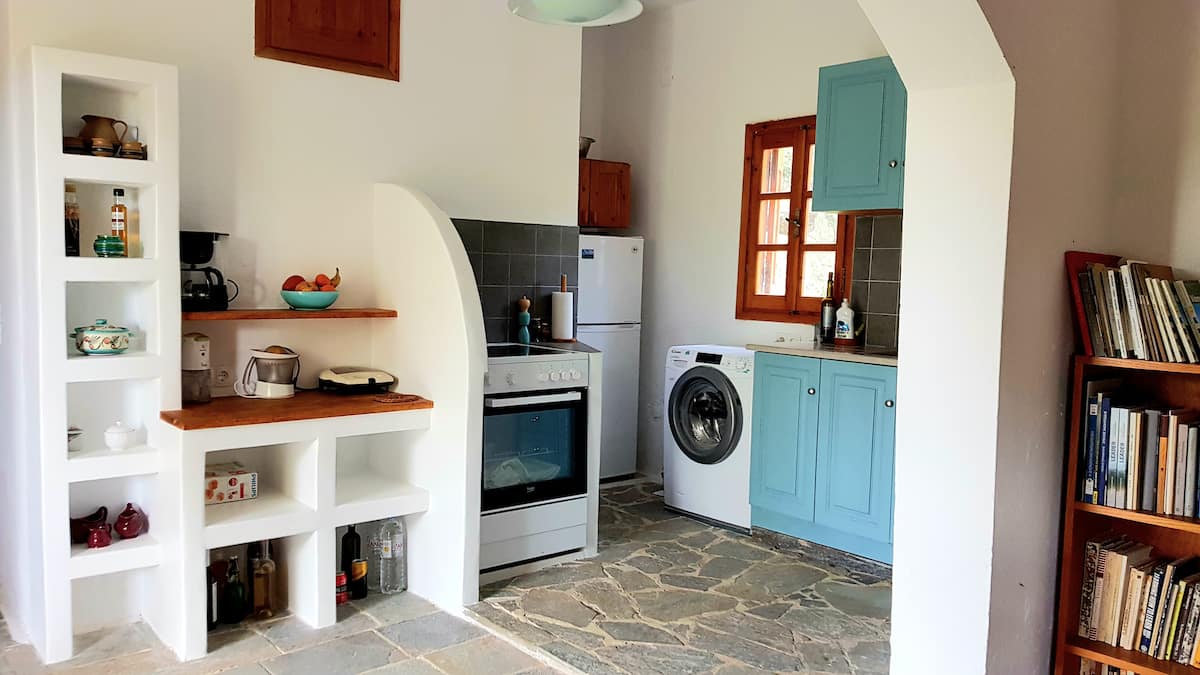 Kuća je veoma dobro opremljena, od kuhinjskih dodataka do ekstra domaćeg ulja od maslina kojima je kuća okružena. Sve može koristiti gosti. Kuća je udaljena 200 metara od plaže i nekoliko minuta vožnje od usamljenih plaža.